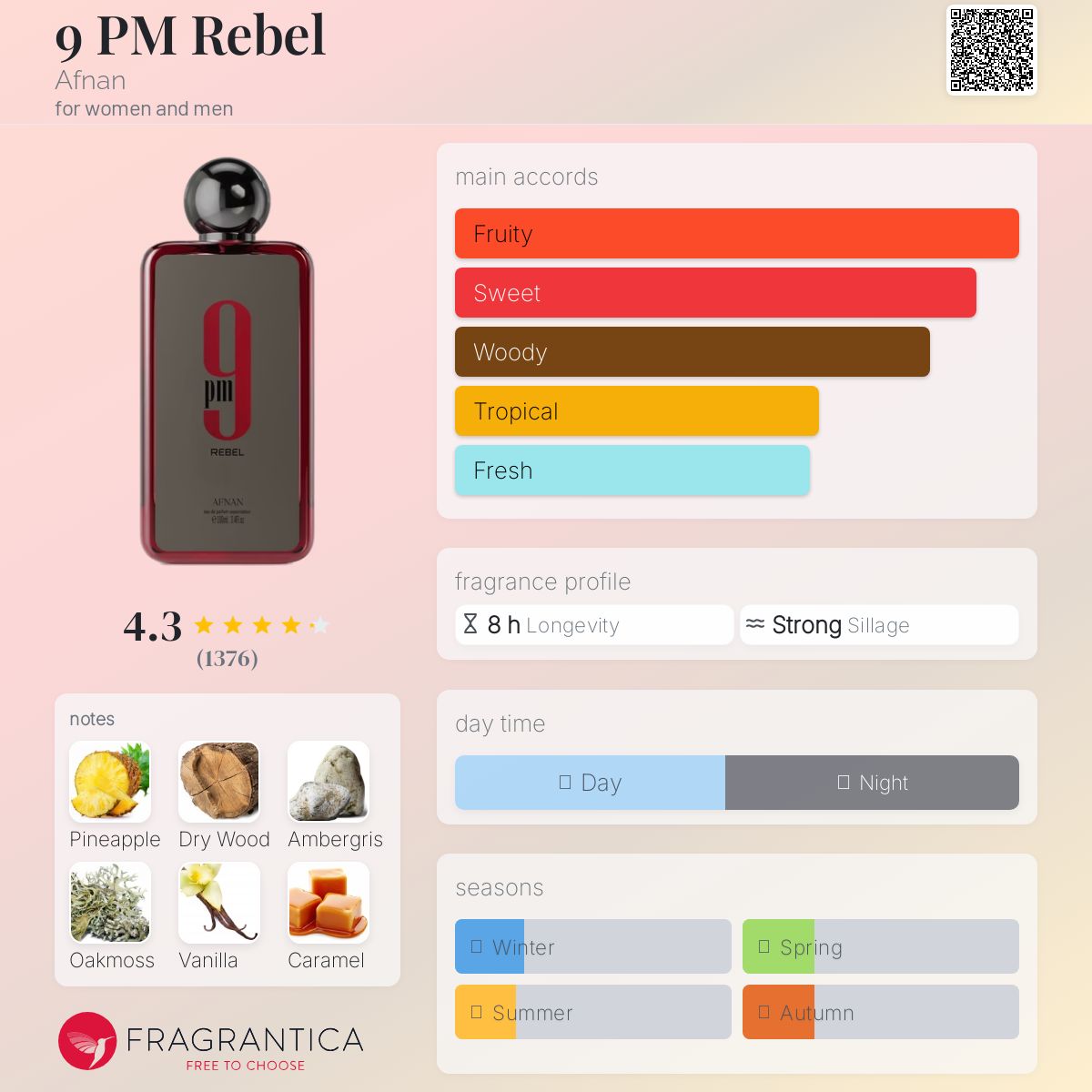 9 PM Rebel by Afnan Perfumes | Sophisticated Unisex Fragrance with Fruity &  Woody Notes