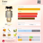 Fame by Rabanne is a Floral Woody Musk fragrance for women. Fame was launched in 2022. Fame was created by Dora Baghriche, Marie Salamagne, Alberto Morillas and Fabrice Pellegrin. Top notes are Mango and Bergamot; middle notes are Jasmine and Olibanum; base notes are Vanilla and Sandalwood.